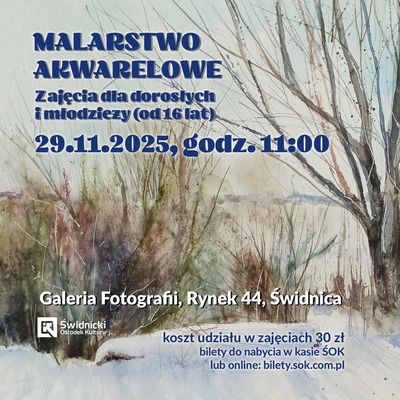 Świdnicki Ośrodek Kultury zaprasza na warsztaty akwarelowe z Andrzejem Rabiegą – artystą specjalizującym się w malowaniu ptaków, którego prace prezentowane były w ubiegłym roku na wystawie pt. „Akwarelowe ptaki” w Wieży Ratuszowej w Świdnicy.